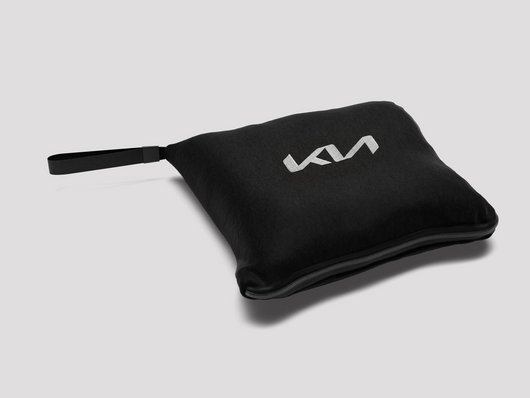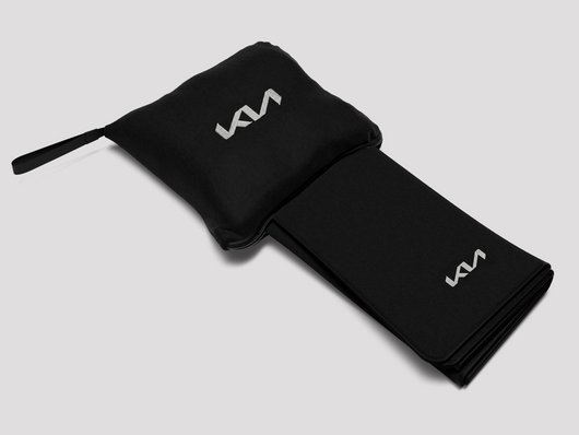 Oavsett om du besöker en kylig utomhuskonsert eller vilar huvudet efter en picknick är denna 2-i-1-filt/kudden en praktisk följeslagare. Filten på 180x120 cm kan vikas platt till en kudde. Vita Kia-logotyper i mitten av kudden och hörnet av filten skapar en snygg kontrast till det mjuka, helsvarta materialet.
