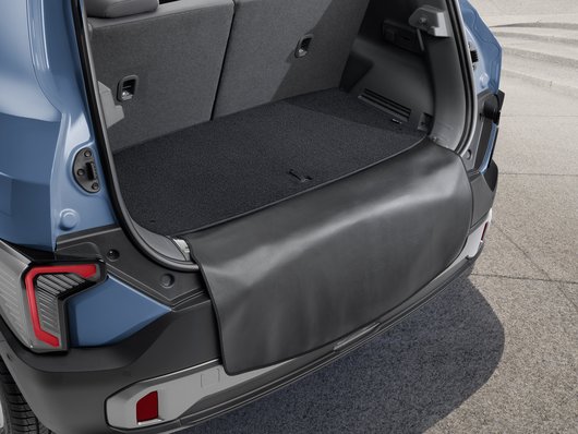 Denna skräddarsydda utfällbara bumper flap skyddar den bakre stötfångaren från skador vid lastning och lossning. Fästs snabbt och enkelt på baksidan av bagagerumsmattan.